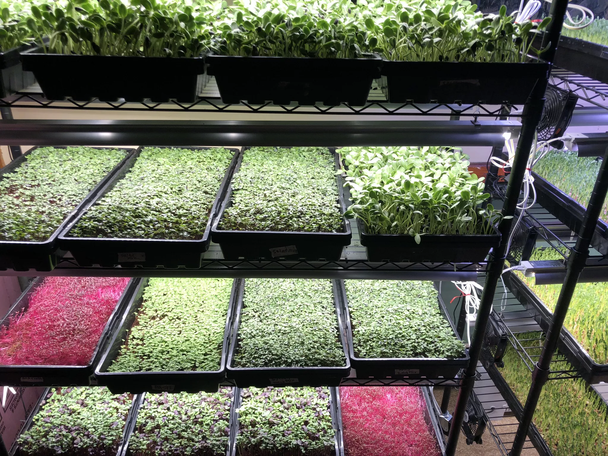 We have two highly insulated rooms in our barn for growing and harvesting our microgreens. Heating and cooling are provided by an efficient heat pump and power is primarily from our nearby solar array.